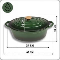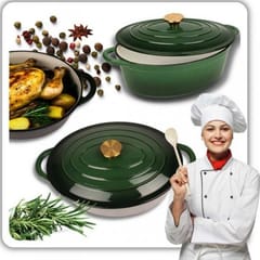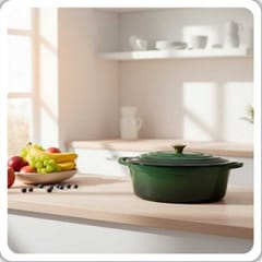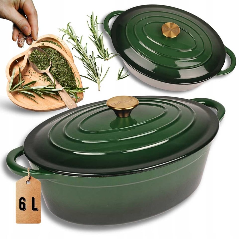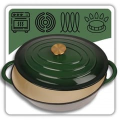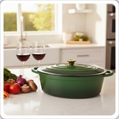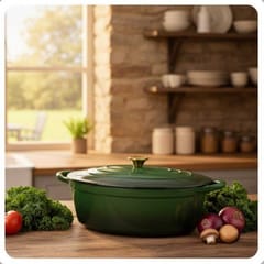 Odkryj niezrównany smak i aromat potraw dzięki naszej emaliowanej brytfannie żeliwnej w przepięknym kolorze butelkowej zieleni. To wszechstronne i niezastąpione naczynie w każdej kuchni, które łączy w sobie tradycyjną solidność żeliwa z nowoczesną elegancją.Idealne do pieczenia, duszenia, zapiekania i gotowania, pozwoli Ci na nowo odkryć radość z tworzenia kulinarnych arcydzieł.