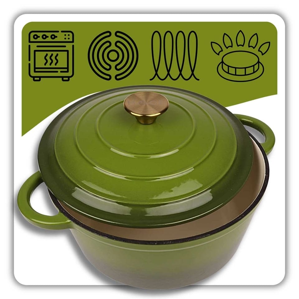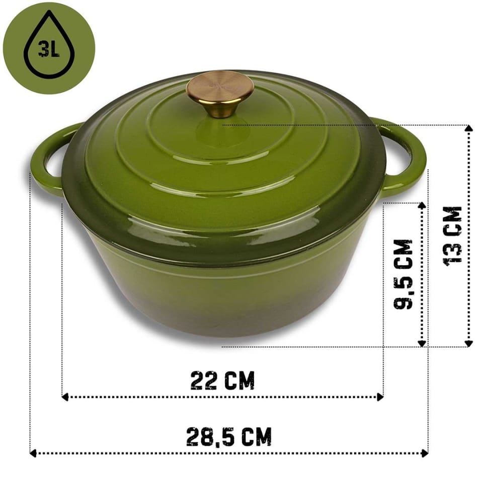 - Piękny wygląd: Elegancki, zielony kolor garnka nie tylko dodaje kuchni charakteru i nowoczesności, ale także świetnie komponuje się z innymi naczyniami.