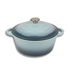 Żeliwny garnek emaliowany w kolorze miętowym to wszechstronne naczynie do gotowania, duszenia, zapiekania i pieczenia. . Żeliwo równomiernie się nagrzewa i długo utrzymuje ciepło, co pozwala oszczędzać energię. Garnek nadaje się do wszystkich rodzajów kuchenek, w tym indukcyjnych, oraz do piekarnika. Wnętrze garnka wymaga okresowej impregnacji olejem. Naczyń żeliwnych nie należy myć w zmywarkach. Zaleca się mycie ręczne.