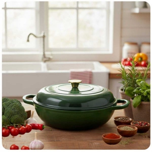 - Wielofunkcyjność: Idealny do gotowania na wszystkich typach kuchenek, w tym indukcyjnych. Doskonale sprawdzi się także w piekarniku, dzięki swojej zdolności do długotrwałego utrzymywania ciepła.