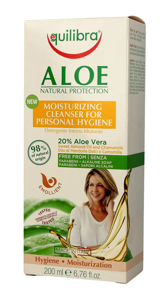 - ALOES(20%): zapewnia higienę i naturalną równowagę okolic intymnych, chroni i wzmacnia barierę ochronną skóry