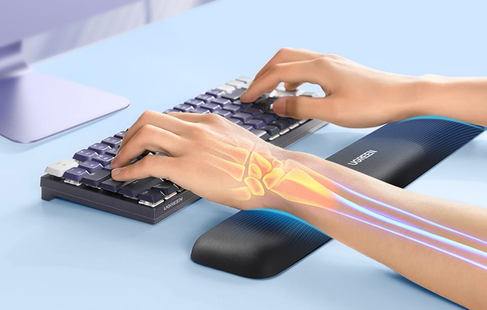- - Komfortowe wsparcie: Ergonomiczny design i pianka z pamięcią kształtu pozwalają utrzymać nadgarstki w naturalnej pozycji, minimalizując ryzyko dyskomfortu,