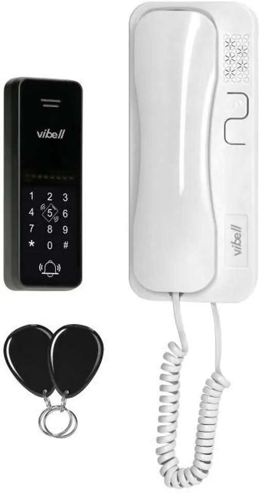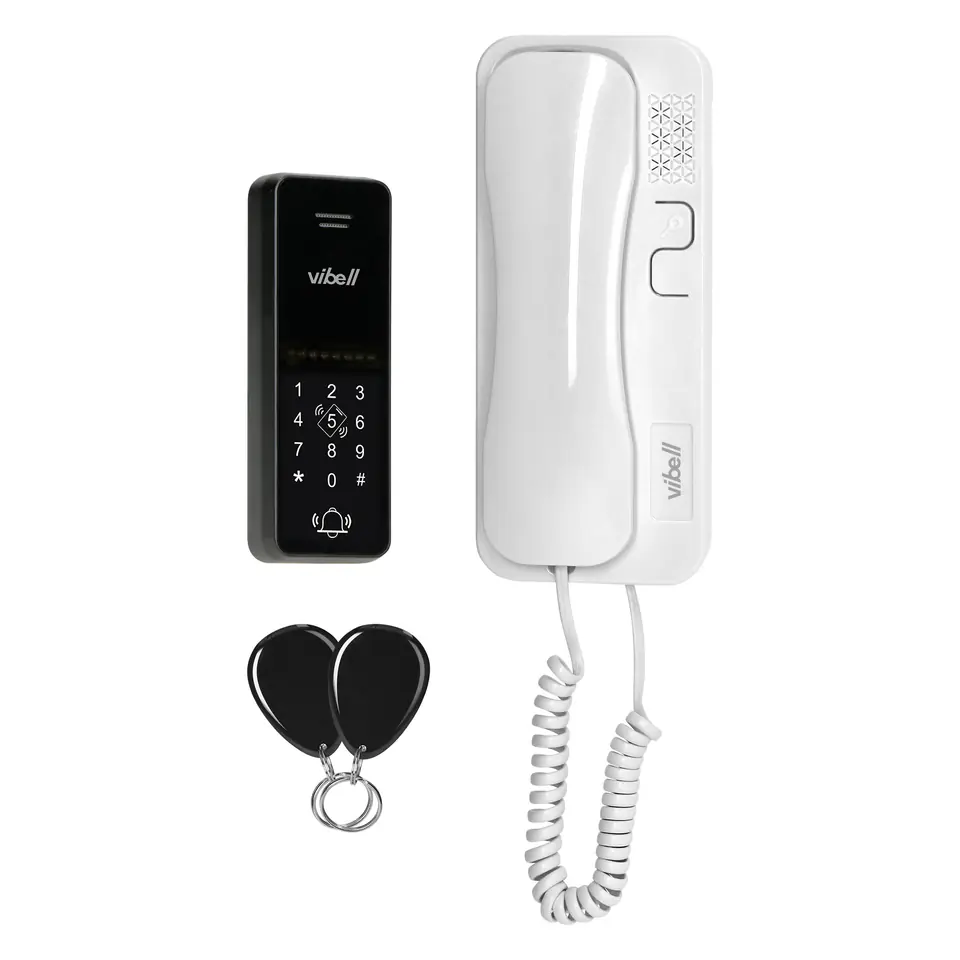 ERIN, zestaw domofonowy jednorodzinny, 2-żyłowy, szyfrator, RFID, biały