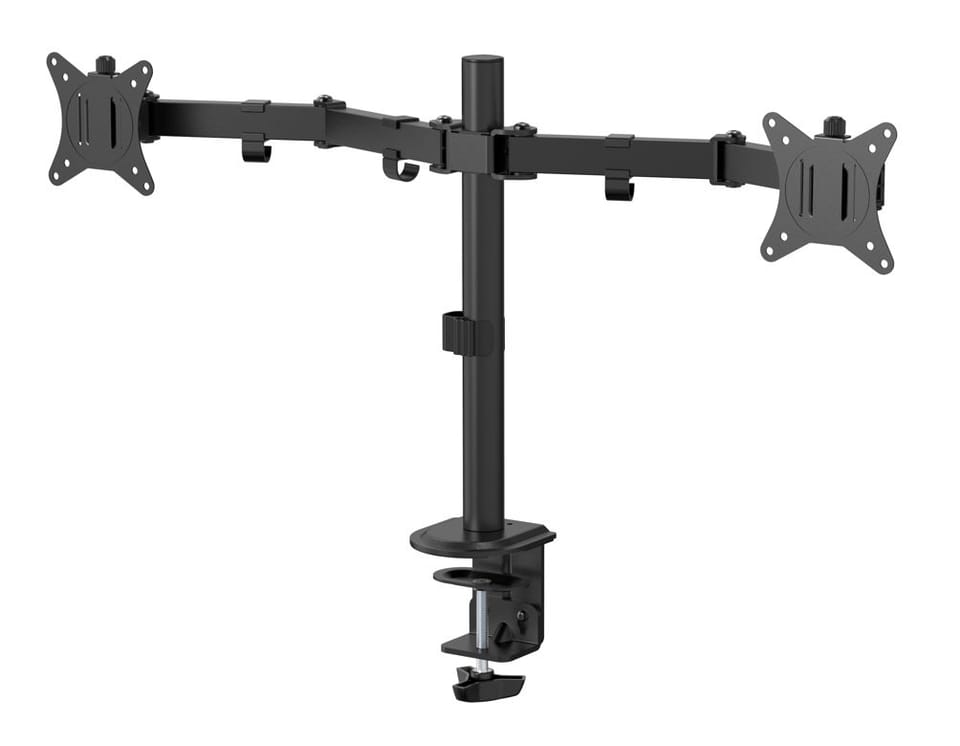 | Opis: | eSTUFF Dual Office Monitor Desk Mount Quick Release VESA 75x75 and 100x100, Screen Size 17"-32". |