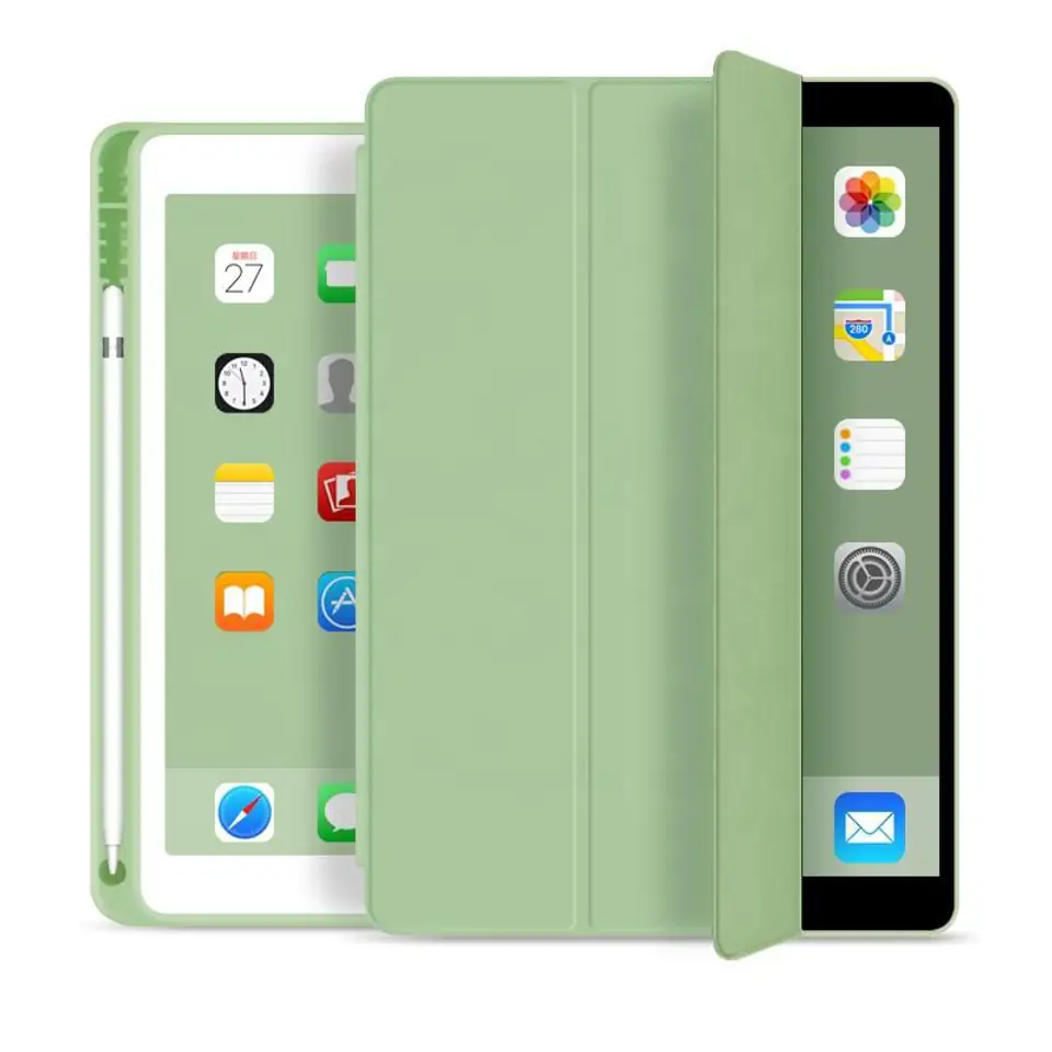eSTUFF iPad 9.7 2018/2017 SEATTLE Pencil Case. Light Green PU leather front with soft TPU back and pencil slot.
