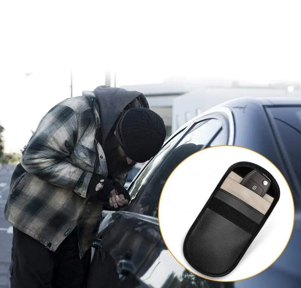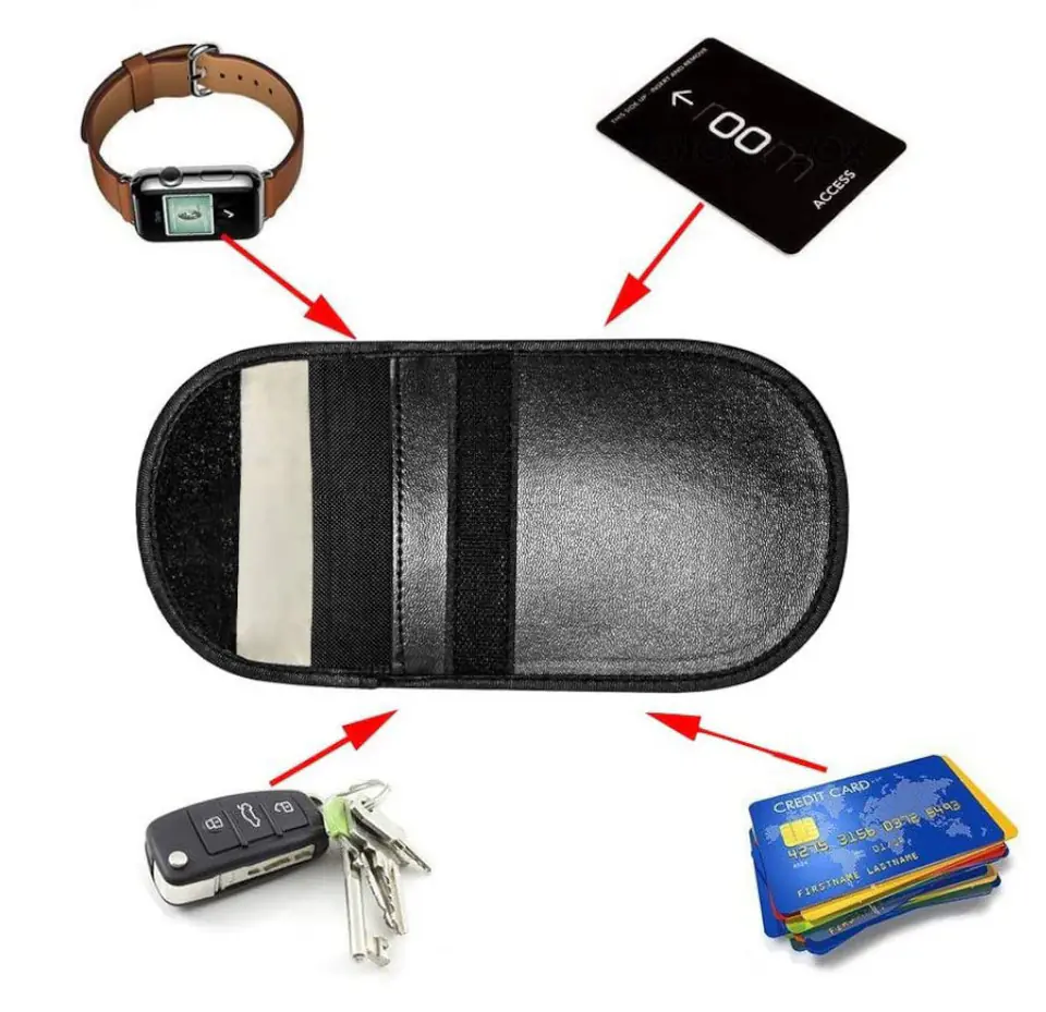 Etui antykradzieżowe na klucze samochodowe blokujące fale radiowe pokrowiec Keyless Faraday Box klatka Faradaya 14 cm z 10 cm czarny