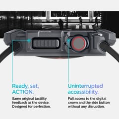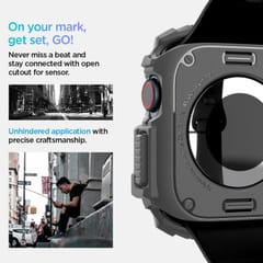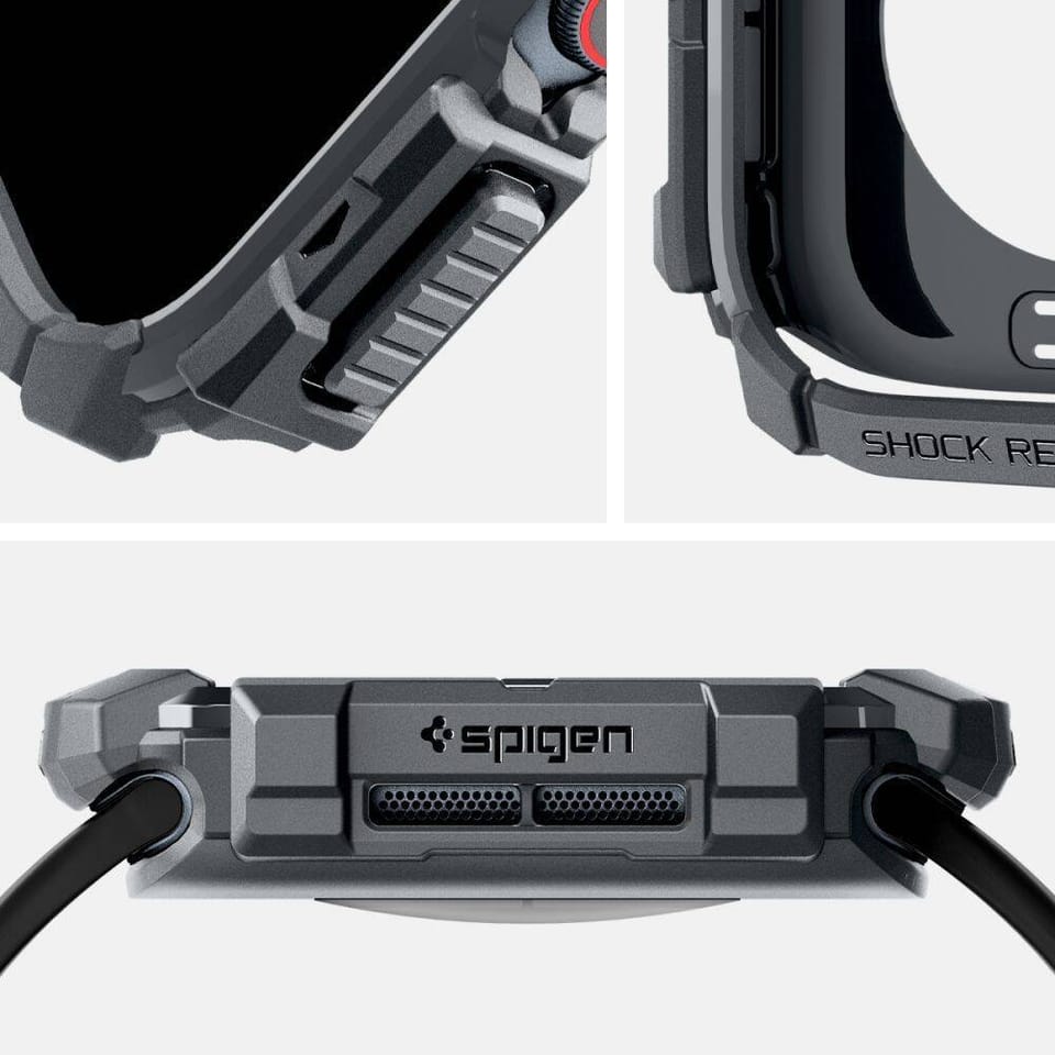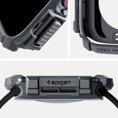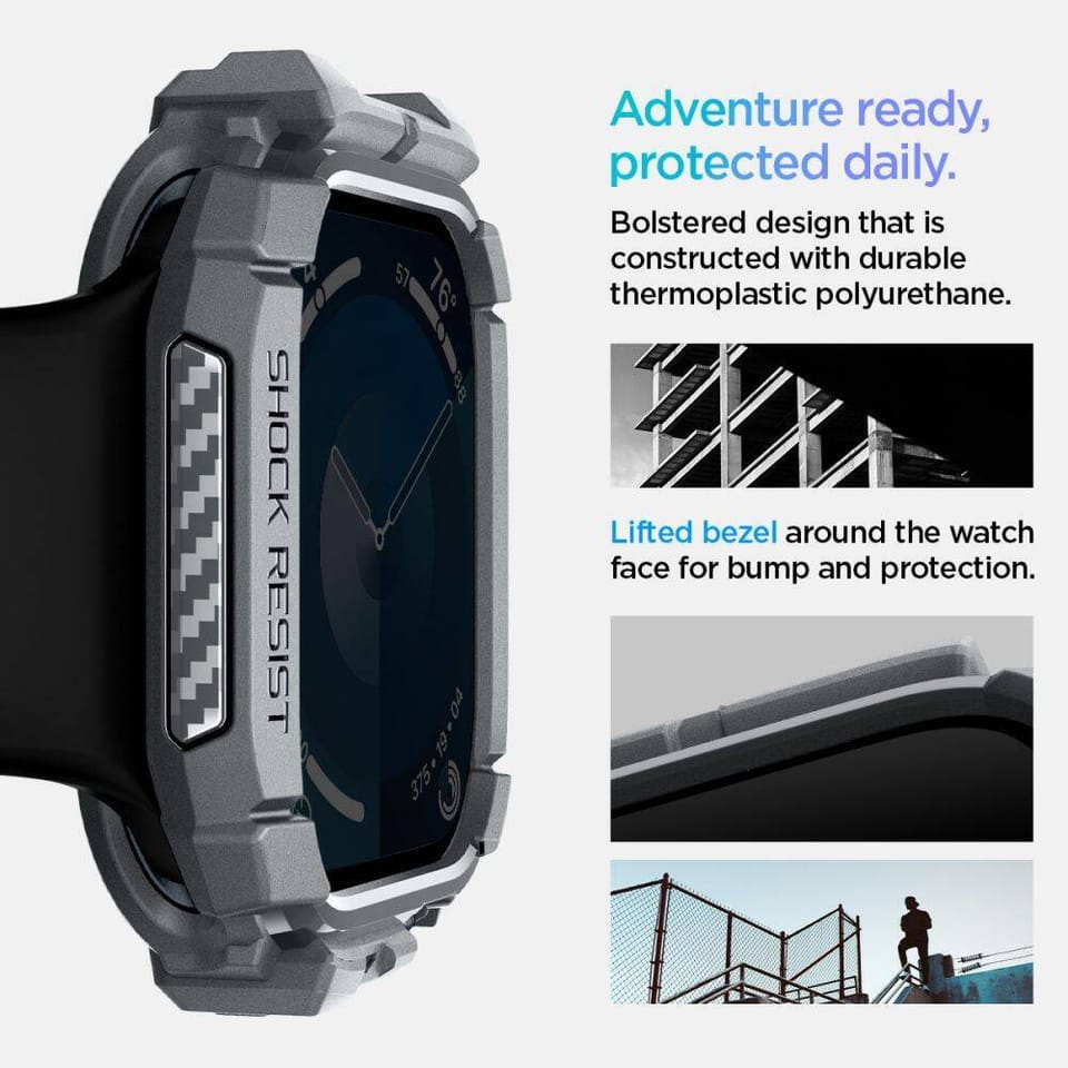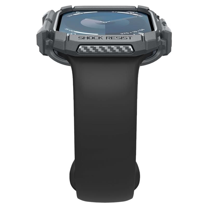 Innowacyjne ochronne etui dla Apple Watch. Wykonane z wytrzymałego i elastycznego tworzywa TPU odpornego na ścieralność. Rugged Armor pokryty jest błyszczącym włóknem węglowym, które tworzy elegancką teksturę karbonową. Produkt jest idealnie dopasowany, w pełni funkcjonalny, nie ogranicza dostępu do portów zewnętrznych i skutecznie chroni urządzenie przed zarysowaniami czy upadkami. Rugged Armor kusi nowoczesnym wzornictwem!Rugged Armor został poddany testom sprawnościowym i otrzymał certyfikat MIL STD 810G-516.6 co oznacza, że spadał 26 razy z wysokości 2 metrów.Wszystkie produkty Spigen są testowane pod kątem odporności na ścieranie oraz precyzyjnego dopasowania, w celu dostarczenia wysokiej jakości etui.