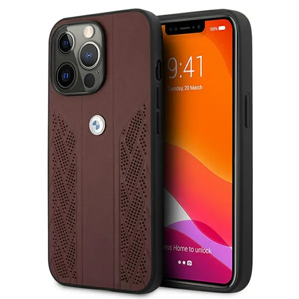 Etui BMW BMHCP13LRSPPR iPhone 13 Pro/13 6,1" czerwony/red hardcase Leather Curve Perforate