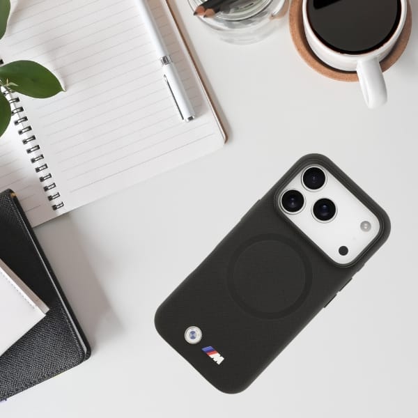 Dane Techniczne Marka BMW Kolekcja M FW Metal Logo Typ produktu Etui ochronne Materiał Skóra ekologiczna / PC / TPU Kolor Czarny Kompatybilność iPhone 17 Pro Max