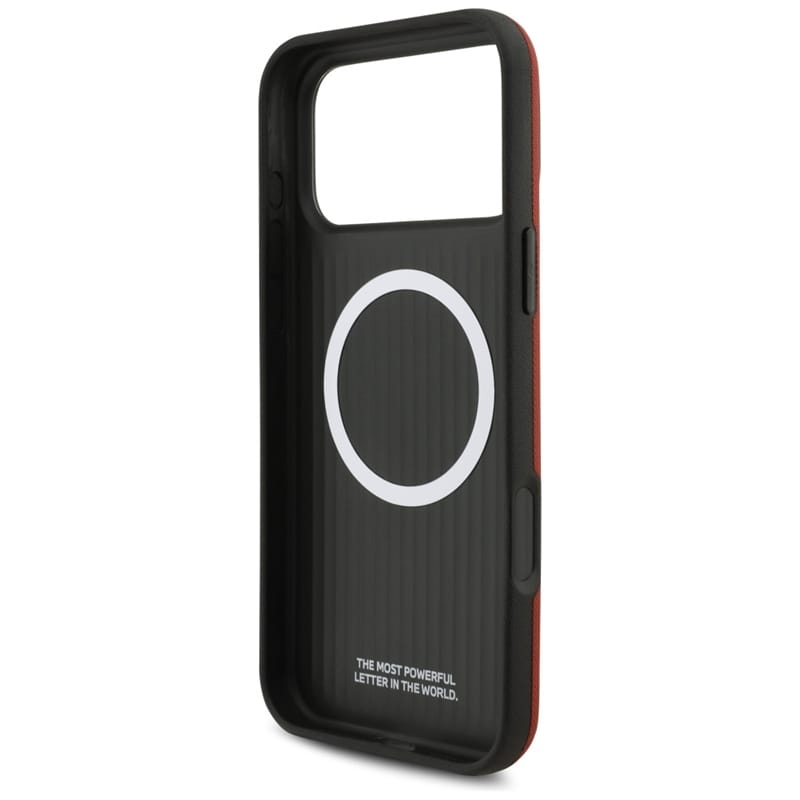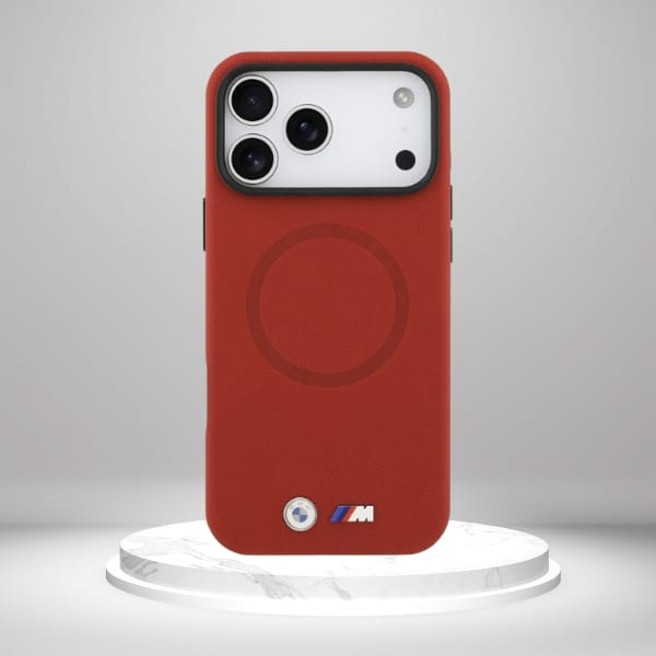 Dane Techniczne Marka BMW Kolekcja M FW Metal Logo Typ produktu Etui ochronne Materiał Skóra ekologiczna / PC / TPU Kolor Czerwony Kompatybilność iPhone 17 Pro Max