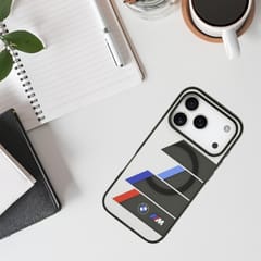 Dane Techniczne Marka BMW Kolekcja M IML Metal Buttons Tricolor Lines MagSafe Typ produktu Etui ochronne Materiał PC / TPU Kolor Antracyt Kompatybilność iPhone 17 Pro