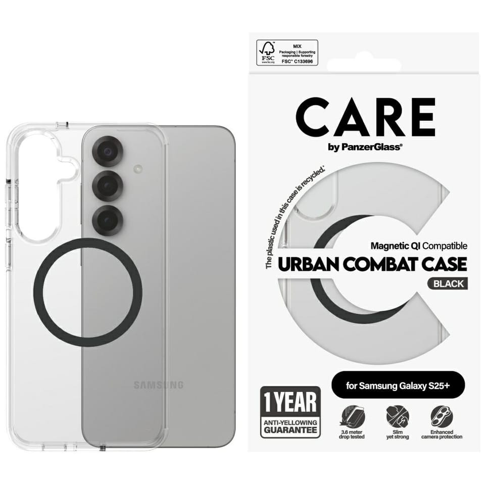 Etui CARE by PanzerGlass Flagship Urban Combat Black QI do Samsung Galaxy S25+ przezroczysty