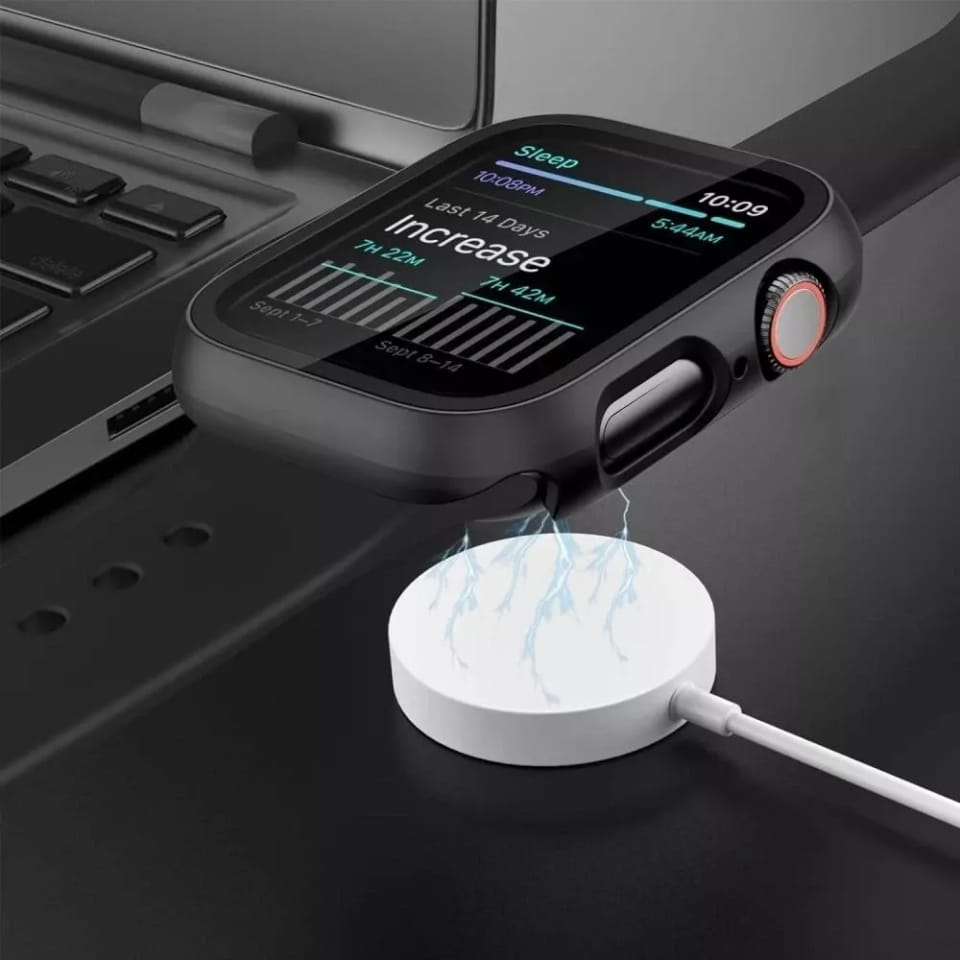 Smukłe i lekkie etui z wbudowanym szkłem zaprojektowane tak, aby idealnie przylegało do Apple Watch.