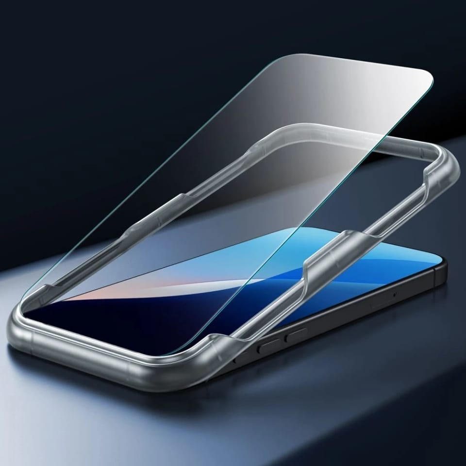 Dołączone szkło hartowane o wymiarach 159 × 73 mm posiada powłokę oleofobową, która chroni przed zabrudzeniami i zapewnia doskonałą przejrzystość. Instalacja szkła jest szybka i precyzyjna dzięki dołączonej ramce montażowej i zestawowi czyszczącemu.