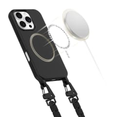 Etui jest kompatybilne z MagSafe, co umożliwia szybkie i bezproblemowe ładowanie bezprzewodowe. Dodatkowo, wyposażone jest w regulowaną i odczepianą smycz w formie sznurków, co zapewnia wygodę noszenia i bezpieczeństwo Twojego telefonu.