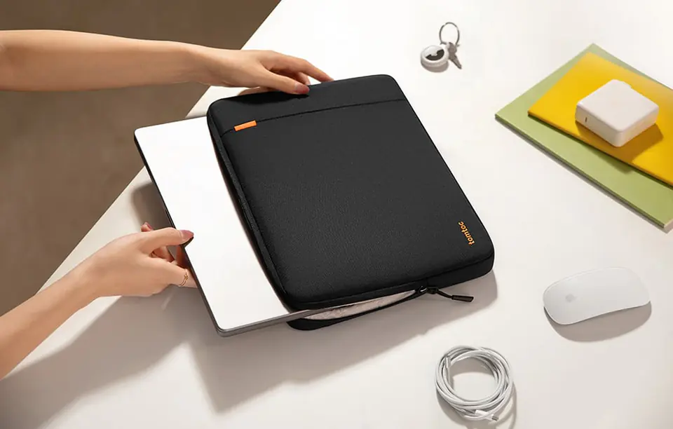 Tomtoc Defender A13 to pokrowiec na laptopy o przekątnej 13 cali - posiada jedną komorę i kieszonkę zapinaną na zamek po zewnętrznej stronie. Stworzony z myślą o MacBookach Air i Pro, do których został idealnie spasowany. Wewnątrz kieszeni znajduje się dodatkowy zaczep na AirTag lub klucz. Wszystkie krawędzie, ze szczególną dbałością o rogi wyłożone zostały materiałem absorbującym wstrząsy, aby zapewnić sprzętowi najlepszą ochronę. Pokrowiec spełnia wojskowy standard MIL STD 810-516.8 w zakresie upadków. Zastosowany materiał pochodzi z recyklingu i jest odporny na uszkodzenia mechaniczne oraz zachapania, wszyty po bokach zamek wyprodukowany został przez YKK - znaną i cenioną japońską markę. Wnętrze pokrowca wyściełane zostało delikatnym materiałem oraz grubą warstwą wypełnienia. Pokrowiec cechuje się eleganckim, minimalistycznym designem.