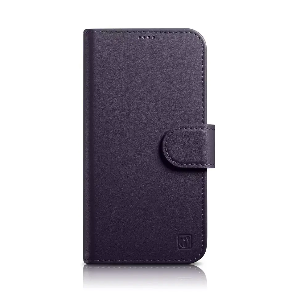 Etui na telefon iCarer Wallet Case 2in1 do iPhone 14 Plus skórzany pokrowiec z klapką Anti-RFID ciemnofioletowy