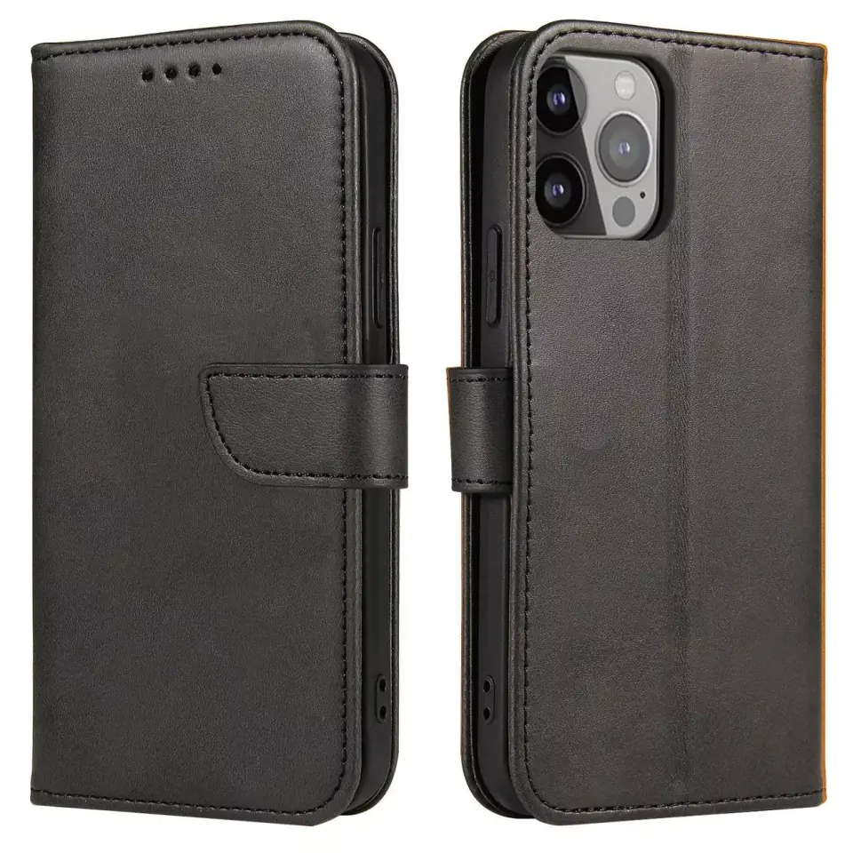 Etui na telefon Magnet Case do iPhone 14 Plus elegancki futerał etui pokrowiec z klapką i funkcją podstawki czarny