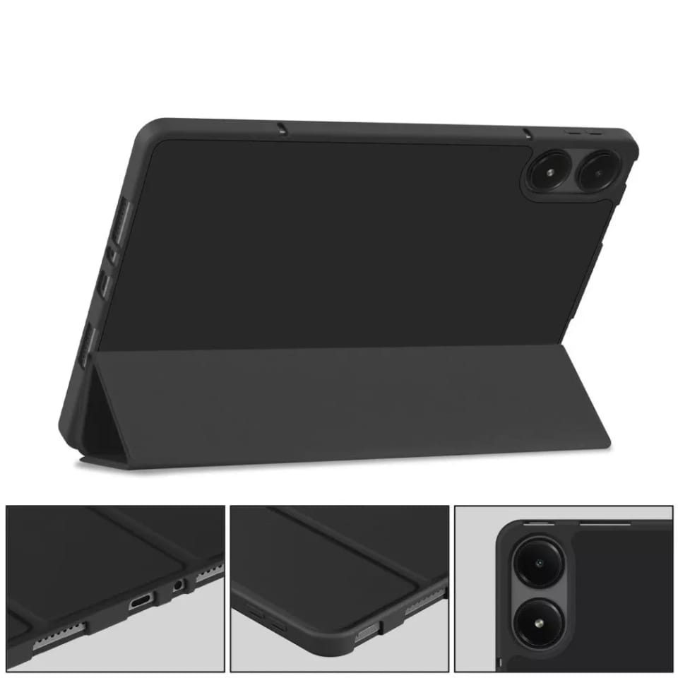 Dzięki zastosowaniu harmonijkowej osłony na przedniej stronie pokrowca, zyskujemy ochronę wyświetlacza, a dzięki technologii wybudzania i usypiania urządzenia, możemy zapewnić nieco dłuższą żywotność jego baterii. Case może służyć również za podstawkę do wygodniejszego korzystania z urządzenia.