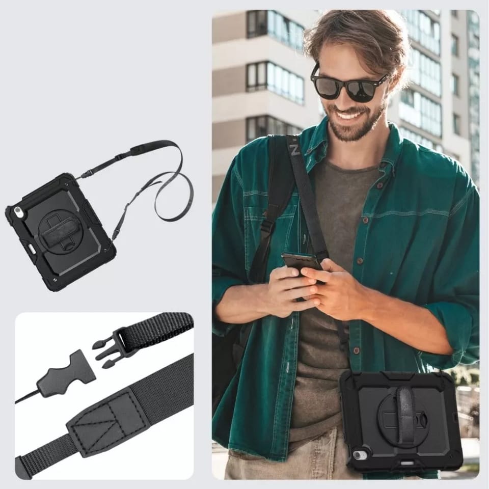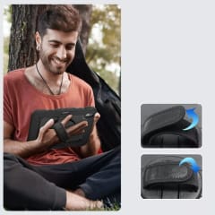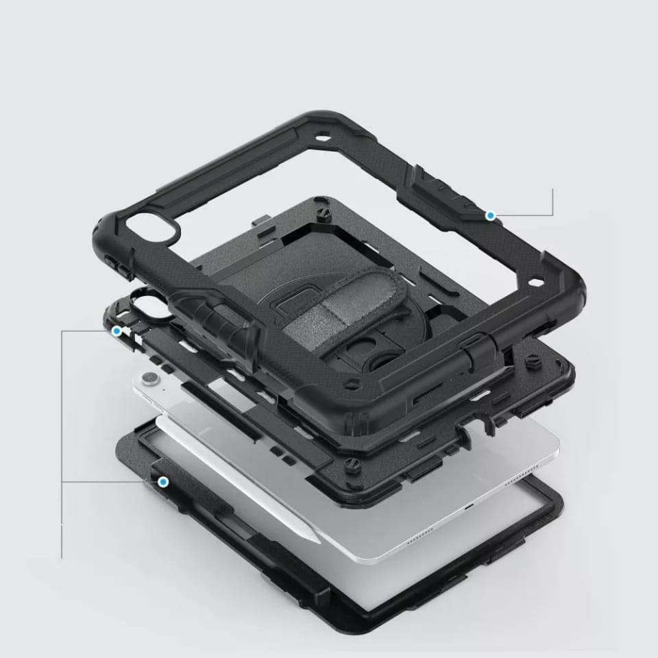 Etui jest idealnie dopasowane, posiada wbudowaną szybkę poliwęglanową o twardości 4h oraz uszczelki zabezpieczające miejsca najbardziej narażone na kurz, piasek i wodę. Producent nie zapomniał o przydatnej podstawce, uchwycie czy smyczy.