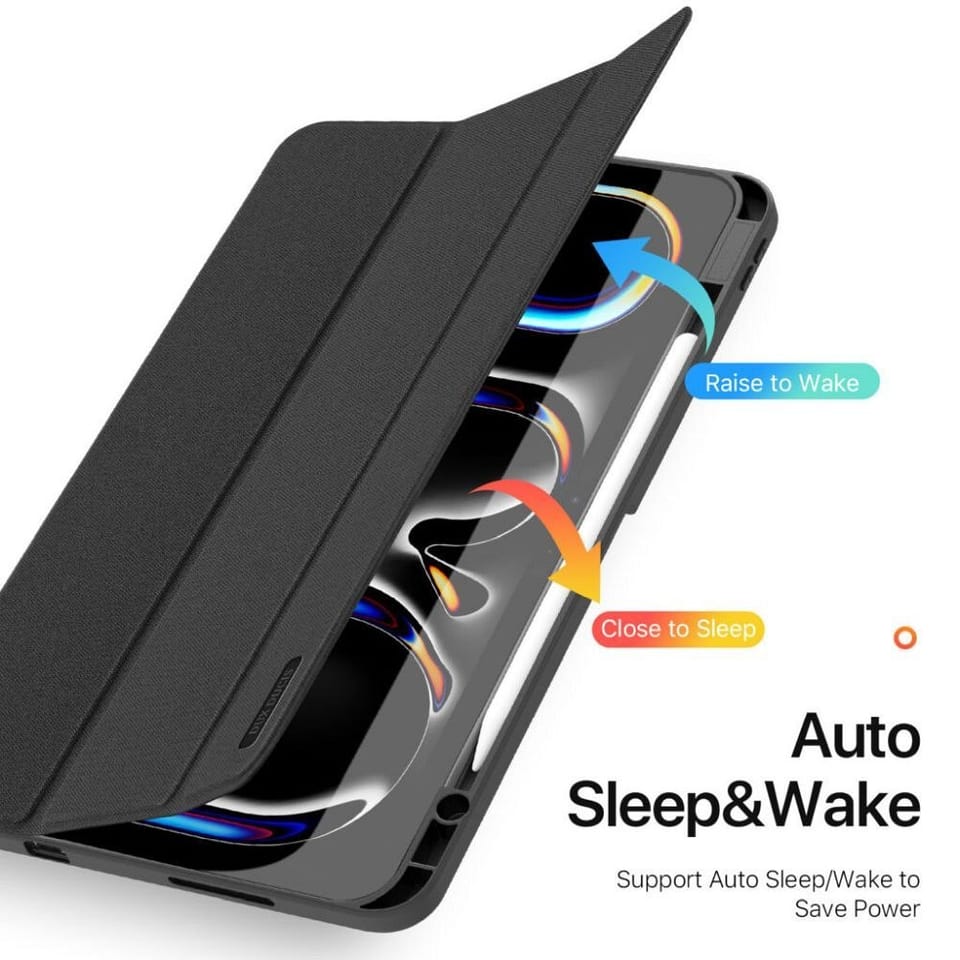 Etui DUX DUCIS DOMO do iPad Pro 13 (2024) to eleganckie i funkcjonalne rozwiązanie dla użytkowników ceniących styl i wygodę. Wykonane z wysokiej jakości materiałów (PU i PC), zapewnia solidną ochronę urządzenia bez nadmiernego zwiększania jego rozmiarów. Minimalistyczny czarny kolor i precyzyjne wykonanie sprawiają, że etui doskonale sprawdzi się zarówno w biurze, jak i podczas codziennego użytkowania.