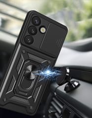 - - Etui pancerne z osłoną aparatu ringiem do Samsung Galaxy S25 Hybrid Armor Camshield - czarne