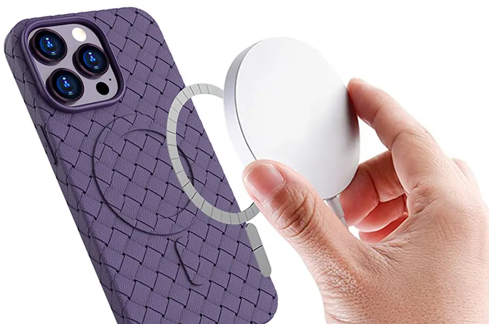 - - Etui pokrowiec plecionka do iPhone 15 Pro z MagSafe Woven Case fioletowy