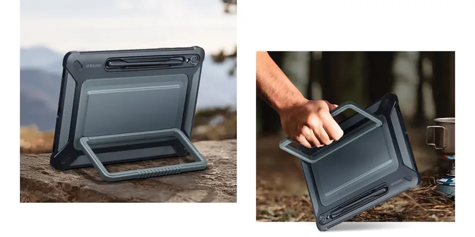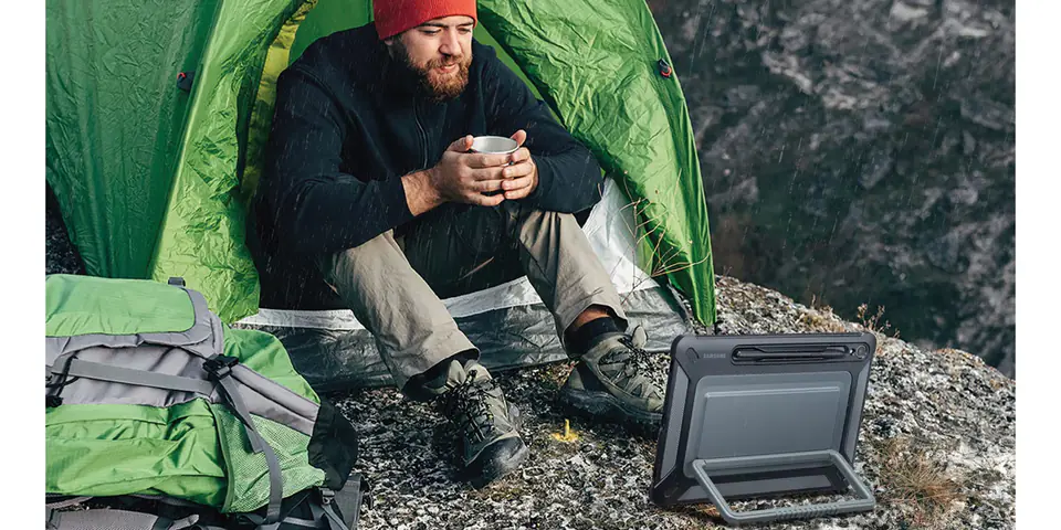 Noś swój tablet na zewnątrz bez obaw. Wytrzymała obudowa ma wytrzymałość klasy wojskowej (MIL-STD 810G-516.7), aby chronić tablet przed drobnymi upadkami i uderzeniami, gdy jesteś w ruchu.