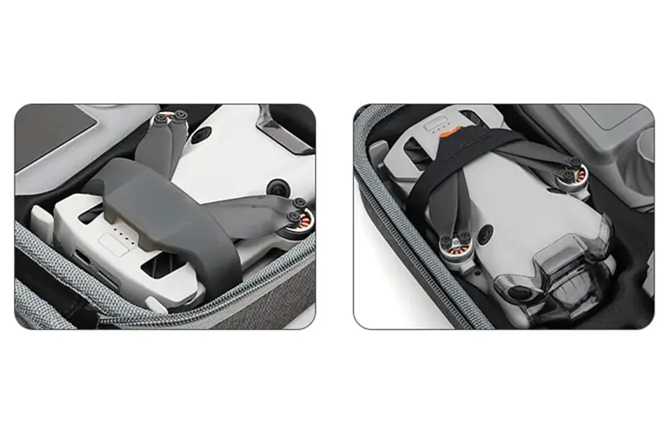 Sunnylife N4P-B696 to poręczny futerał na drona DJI Mini 4 Pro wyściełany w środku przyjemnym w dotyku, miękkim materiałem. Futerał wykonany jest z wytrzymałego materiału, który zapewni dronowi bezpieczeństwo i zminimalizuje wpływ ewentualnych wstrząsów. Nie ma konieczności zdejmowania skrzydeł ani zabezpieczenia na gimbala - dron zmieści się bez problemu razem z nimi.