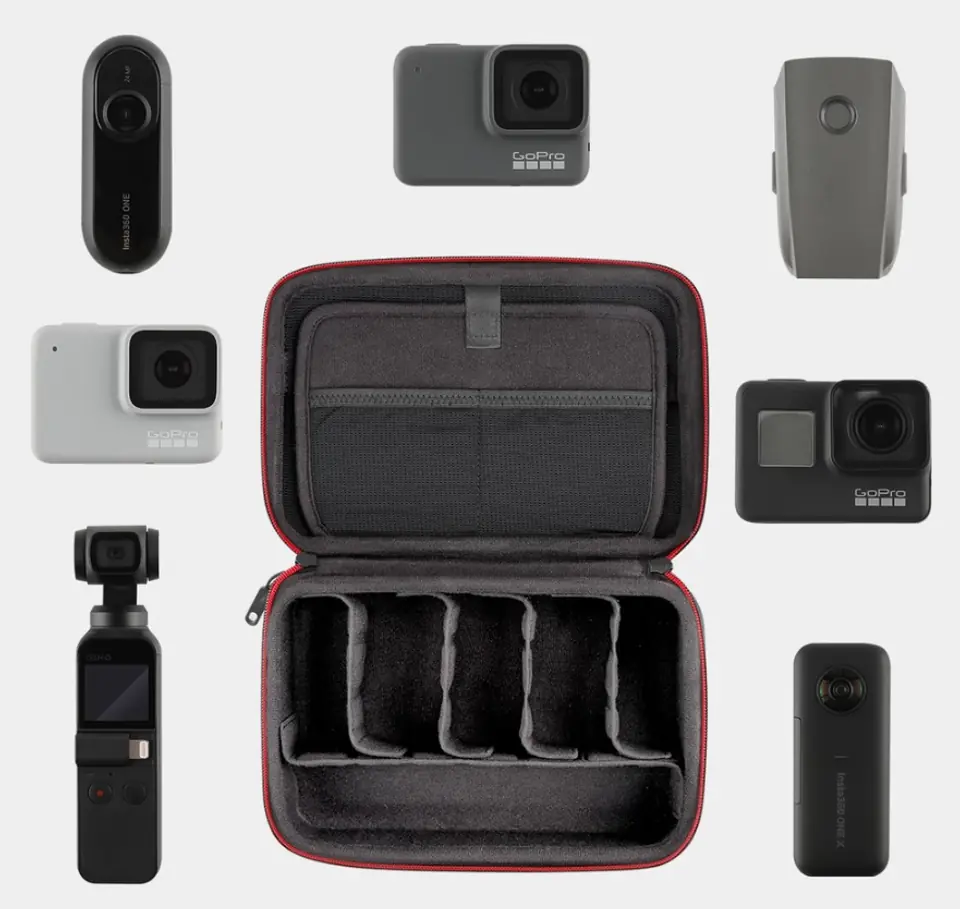 Case transportowy PGYTECH do kamer sportowych to wysokiej jakości wykonanie i bezpieczeństwo transportu. Wewnątrz zmieścimy na p[rzykład Osmo Pocket wraz z dodatkowymi akcesoriami dzięki dwóm długim i czterem krótkim, możliwym do zmiany położenia przegródkom. Materiały wykorzystane do budowy oraz zamek znakomicie chronią przed dostępem wody.
