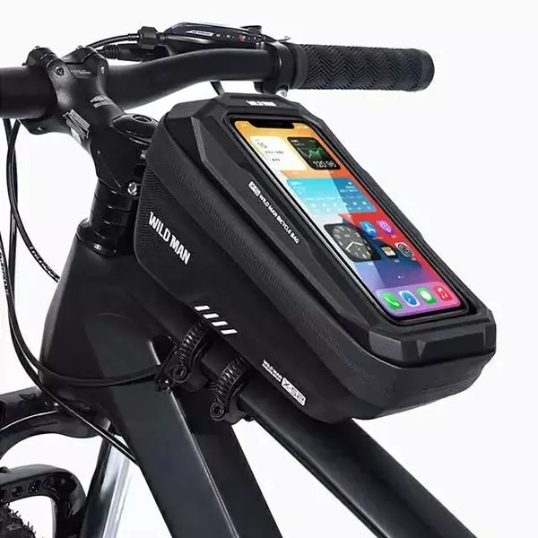 Sakwa montowana jest na ramę roweru, która jest jednocześnie podręcznym schowkiem oraz pokrowcem na naszego smartfona.