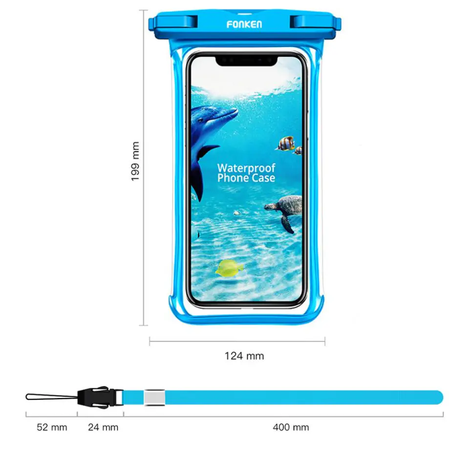 Wodoodporne, uniwersalne etui Fonken z wygodnym i bezpiecznym systemem blokującym, które chroni Twój telefon przed wodą.