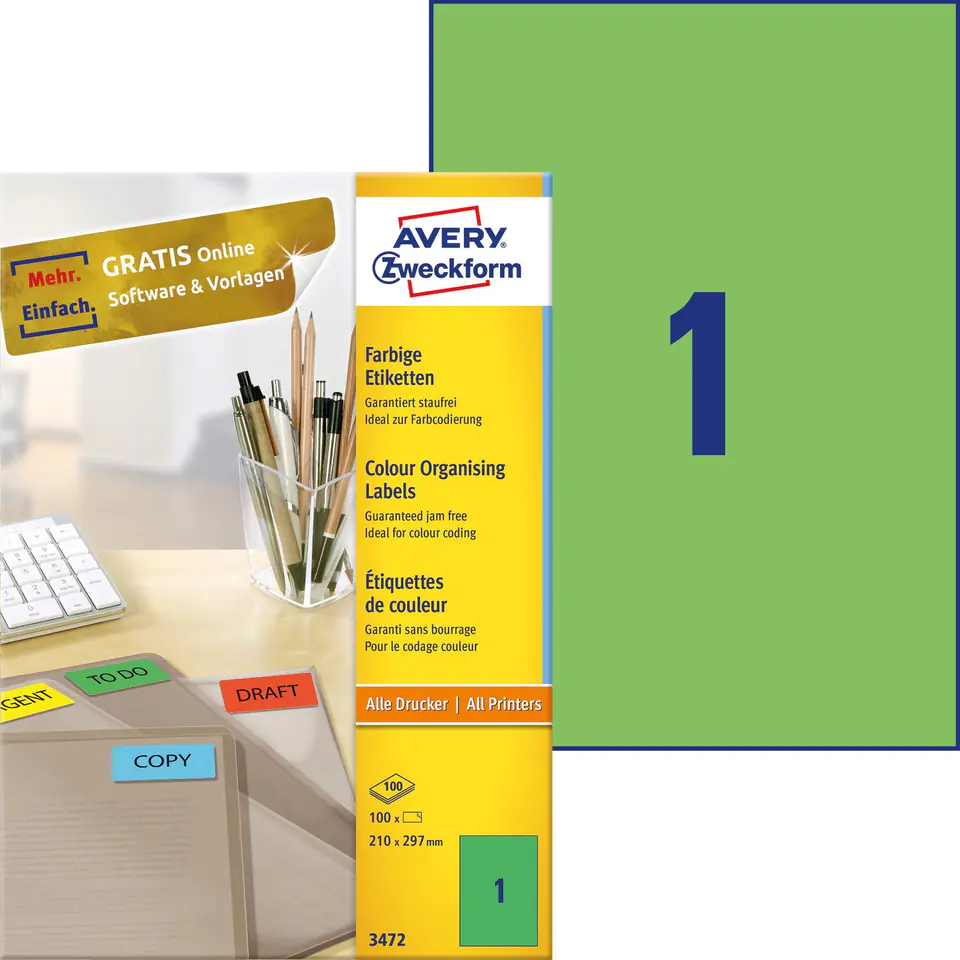 Etykiety A4 zielone 100arkuszy)210*297mm 3472 AVERY ZWECKFOR