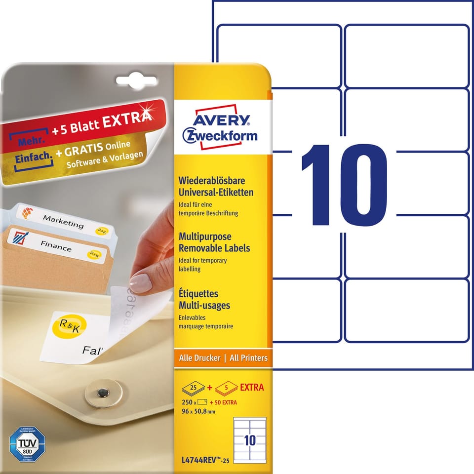 Etykiety białe 96x50,8mm 25 arkuszy = 300 etykiet) L4744REV-25 AVERY ZWECKFOR