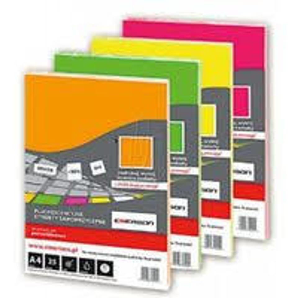 * etykiety kolorowe firmy Emerson, to produkt z przeznaczeniem do tworzenia różnych promocji * możliwość dowolnego zadruku na zwykłej drukarce biurowej * sprzedawane na arkuszach A4 w opakowaniach po 25 szt., po 10 opakowań w kartonie
