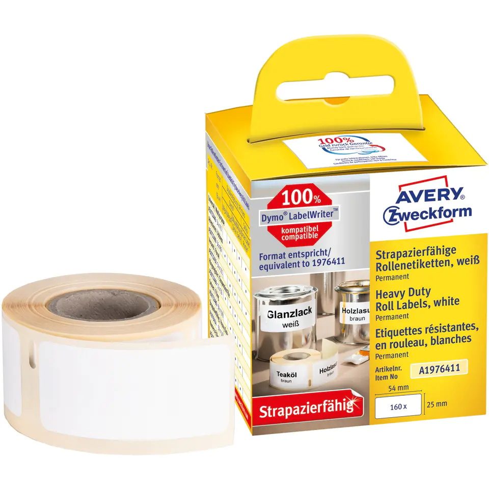 Etykiety Heavy Duty w rolce 160 etyk. 25 x 54 mm, poliestrowe, trwałe białe A1976411 Avery Zweckform