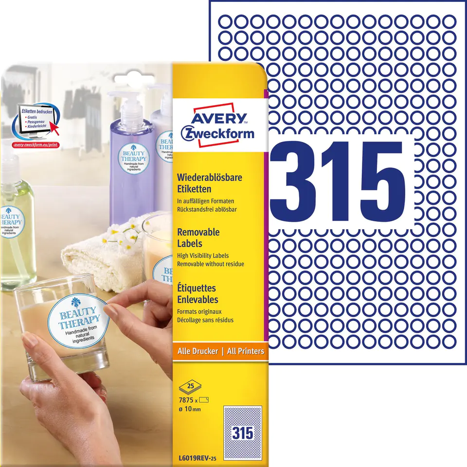 Etykiety ZF Q10mm L6019REV25 25) kółka A4 AVERY ZWECKFOR