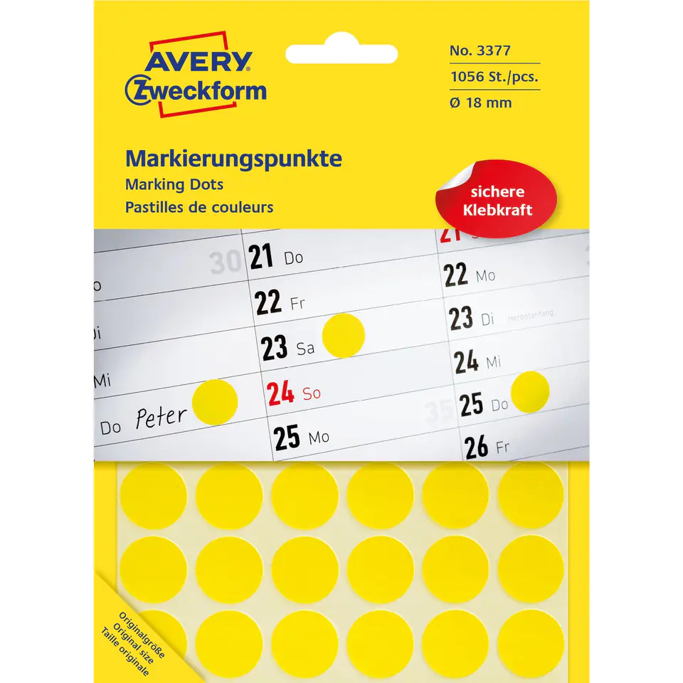 Etykiety ZF Q18mm 3377 żółte kółka BIU AVERY ZWECKFORM