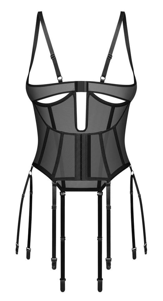 Gorset Euphori – odważna forma, pełna kontrola i zmysłowy efektotwartej konstrukcji cuplessFiszbiny pod biustem oraz pionowe linie konstrukcjipółprzezroczystego, przyjemnego w dotyku materiałuOsiem odpinanych, regulowanych pasków do pończochwielostopniowe zapięcie z tyłu i regulowane ramiączkaNajważniejsze cechy:Odważny fason dla tych, którzy lubią mieć wszystko pod kontrolą – i na widoku.