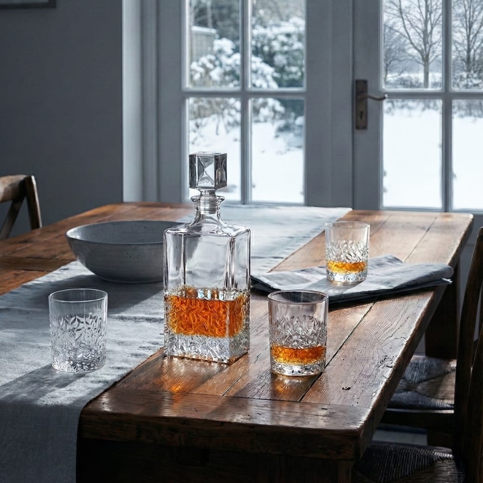 Szklany komplet karafki i sześciu szklanek z serii EVA FROZEN marki AFFEKDESIGN.pojemność szklanki: 310mlpojemnośc karafki: 810ml karafka długość:11.5cm,szerokość:6.5cm,wysokość:23cm bez korka 30.5cm z korkiemszklanka : średnica 8.2cm , wysokość 10 cm