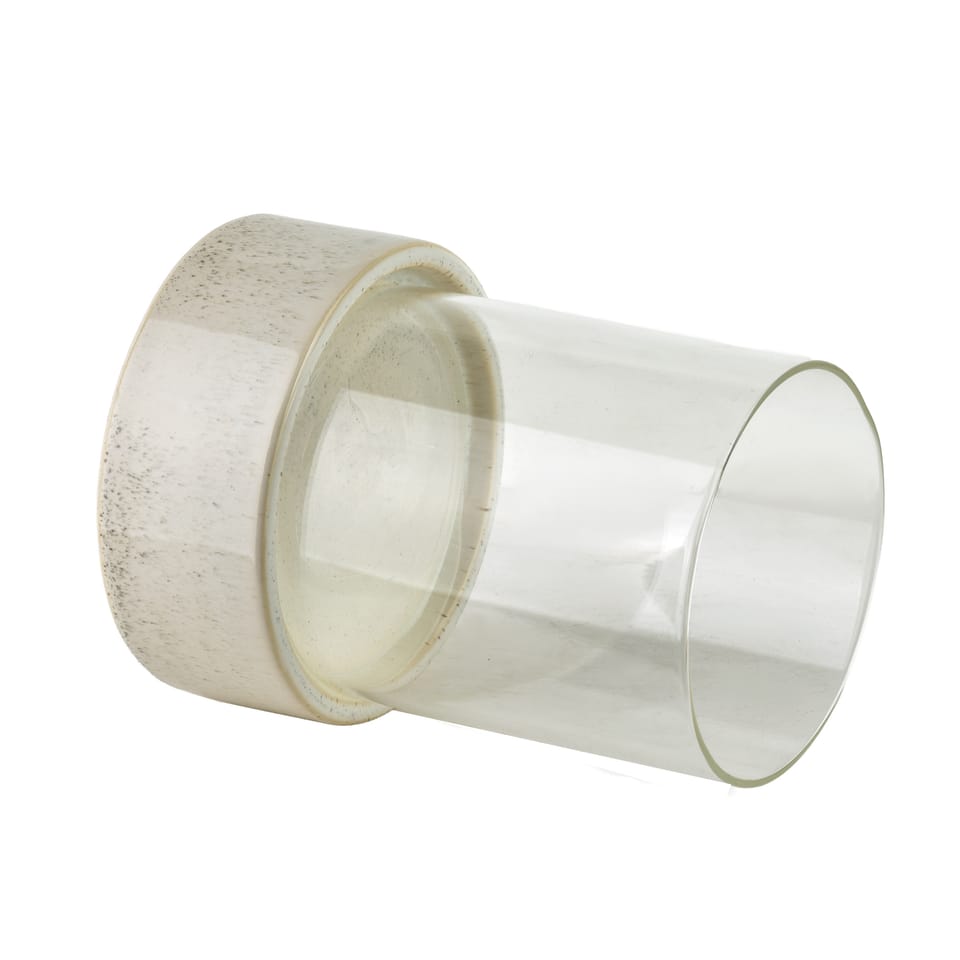 Świecznik EVAM BEIGE to eleganckie dopełnienie kolekcji ceramicznej, które wprowadza do wnętrza harmonię i nastrojowe światło. Konstrukcja łączy w sobie minimalistyczny, szklany klosz z solidną podstawą wykonaną z wysokiej jakości ceramiki. Baza świecznika utrzymana jest w stonowanej, beżowej kolorystyce z charakterystycznym nakrapianiem, co nawiązuje do naturalnego wyglądu kamionki i tworzy spójny zestaw z figurką ptaka z tej samej serii. Przezroczysty cylinder ze szkła pięknie eksponuje płomień świecy, zapewniając jednocześnie ochronę przed przypadkowym zgaszeniem. Dzięki wymiarom 14 x 14 x 14 cm, świecznik jest niezwykle ustawny i doskonale zaprezentuje się na stoliku kawowym, komodzie czy parapecie, podkreślając przytulny charakter wnętrz w stylu japandi, boho lub skandynawskim.Specyfikacja produktu: Wymiary świecznika to 14 x 14 x 14 cm. Został on stworzony z połączenia przezroczystego szkła oraz nakrapianej ceramiki w odcieniu beżowym. Produkt jest częścią kolekcji dekoracji domowych EVAM BEIGE.