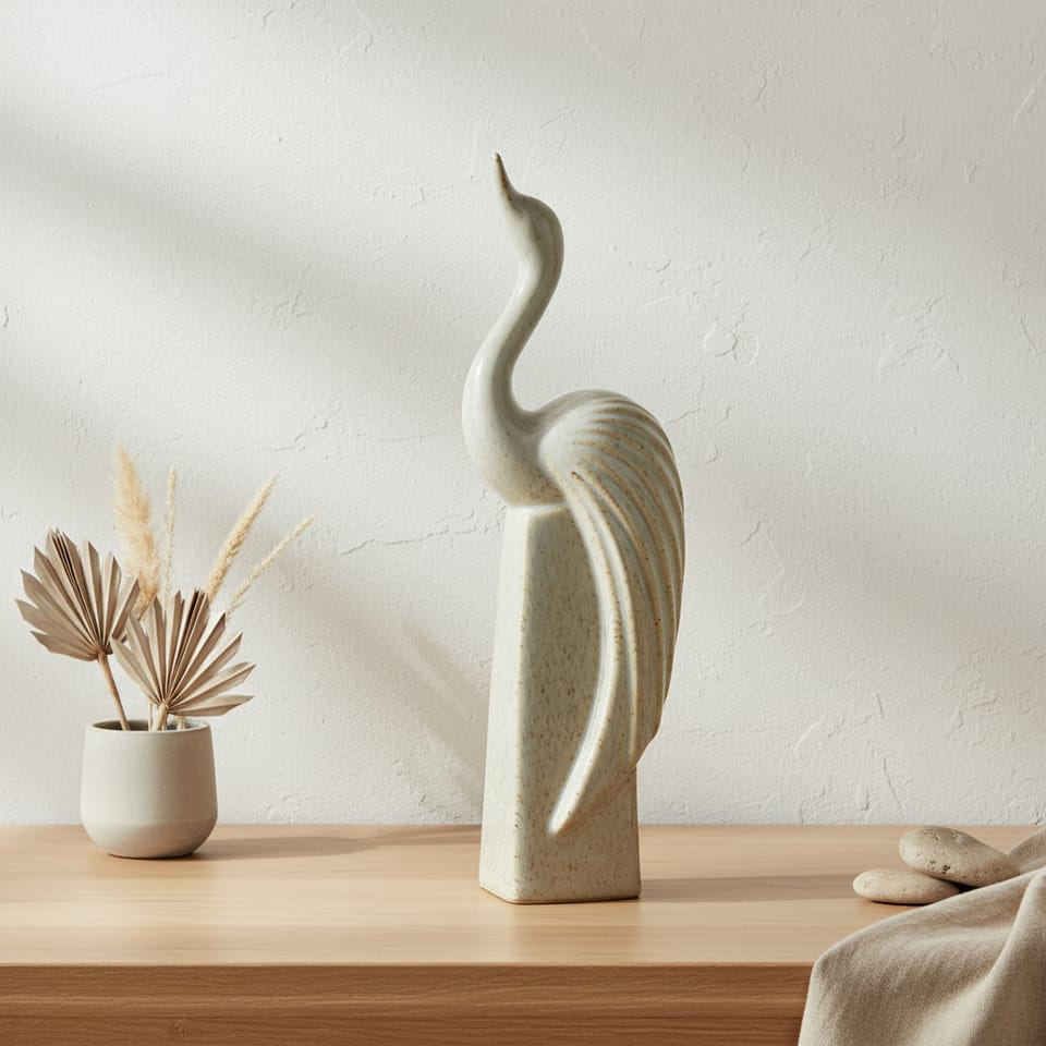 EVAM . Ceramiczna Figura Dekoracyjna (12,5 cm)Wprowadź do swojego wnętrza powiew elegancji i artystycznego spokoju dzięki figurce z kolekcji EVAM. Ta subtelna dekoracja, przedstawiająca stylizowanego ptaka, to doskonałe połączenie nowoczesnego designu z klasyczną formą.Dlaczego warto ją wybrać?Wyjątkowa kolorystyka: Figurka w odcieniu ciepłego beżu została wykończona delikatnym nakrapianiem, co nadaje jej naturalny, kamionkowy wygląd. Artystyczna forma: Smukła sylwetka ptaka osadzona na geometrycznej podstawie tworzy harmonijną całość, która przyciąga wzrok, nie przytłaczając jednocześnie przestrzeni.Wysoka jakość: Wykonana z trwałej ceramiki o gładkim wykończeniu, co gwarantuje łatwość w utrzymaniu czystości i niezmienny wygląd przez lata. Uniwersalny styl: Doskonale odnajdzie się we wnętrzach typu skandynawskiego, boho, japandi czy nowoczesnego minimalizmu.