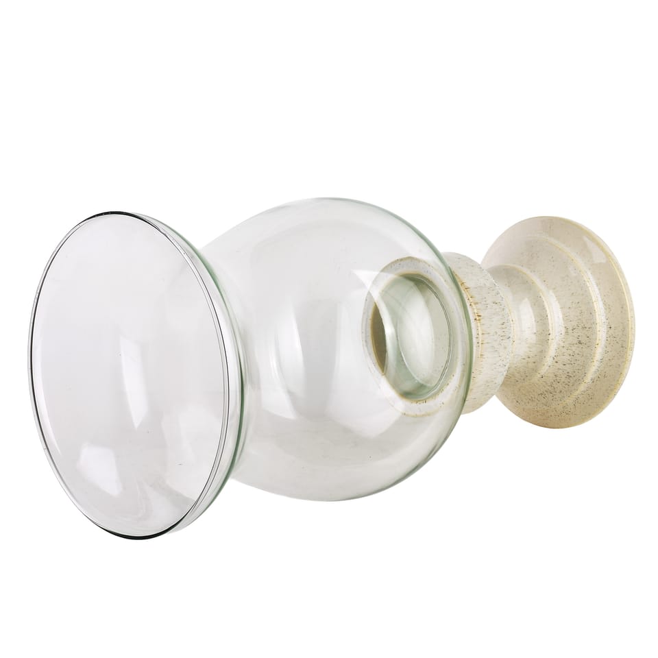EVAM Świecznik dekoracyjny o wymiarach 17 17 34,5 cm, wykonany z wysokiej jakości materiałów: ceramicznej, szkliwionej podstawy oraz szklanego klosza. Eleganckie połączenie ceramiki i szkła nadaje świecznikowi nowoczesny i ponadczasowy charakter, dzięki czemu doskonale wpisuje się w różnorodne aranżacje wnętrz.Świecznik jest wszechstronny . może służyć zarówno jako dekoracja na duże lub małe świece, jak i samodzielny element ozdobny w salonie, jadalni, holu czy na tarasie. Solidna konstrukcja zapewnia stabilność, a gładkie wykończenie ułatwia utrzymanie świecznika w czystości.To elegancki dodatek, który łączy estetykę z funkcjonalnością, wprowadzając do przestrzeni przytulny, dekoracyjny akcent i podkreślając wyjątkowy styl wnętrza.