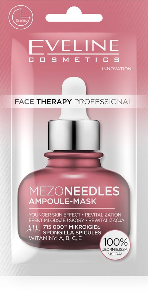 Mezoneedles Ampoule-mask to profesjonalna maseczka przeznaczona do pielęgnacji skóry wymagającej intensywnej regeneracji, wygładzenia i poprawy jędrności. Jej działanie opiera się na wykorzystaniu mikroigieł Spongilla Spicules – mikroskopijnych struktur pochodzenia naturalnego, które penetrują wierzchnią warstwę naskórka, stymulują jego odnowę i ułatwiają wchłanianie składników aktywnych. To innowacyjne rozwiązanie inspirowane mezoterapią mikroigłową, ale w formie nieinwazyjnej, odpowiedniej do stosowania w domowych warunkach.
