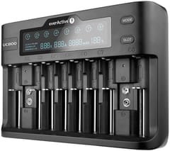 W ładowarce UC800 postawiono na maksymalną kompatybilność - naładujemy w niej dowolne akumulatorki Ni-MH w rozmiarach: R6 AA, R03 AAA, R14 C, SC, oraz akumulatorki typu 9V. Do tego UC800 obsługuje także akumulatory Li-ion o napięciu 3.6/3.7V, ich wysokonapięciową alternatywę - Li-HV, których napięcie znamionowe wynosi 3.85V oraz akumulatory Li-FePO4. W przypadku akumulatorów bazujących na Licie ładowarka obsłuży takie rozmiary jak: 10440, 14500, 14650, 17500, 17670, 18350, 18500, 18650, 20700, 21700- także zabezpieczone, 22650, 25500, 26500, 26650, 16340 R-CR123e. Maksymalna rozpiętość sanek to aż 76mm, zapewni to możliwość ładowania coraz bardziej popularnych akumulatorów 20700 oraz 21700 w wersji z zabezpieczeniem elektronicznym.