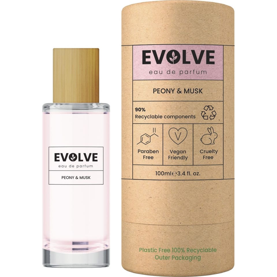 Wody perfumowane Evolve w ekologicznych opakowaniach DLA CIEBIE, DLA NATURY. Marka Evolve oferuje perfumy w niemalże całkowicie wolnych od plastiku, pochodzących z recyklingu i nadających się do ponownego recyklingu, opakowaniach. W estetycznych kartonowych tubach, wykonanych z papieru kraft, znajdziesz elegancki flakonik z nadrukiem na szkle oraz bambusową nakrętką.