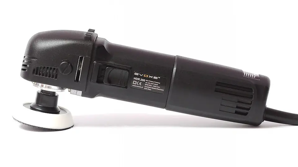 Evoxa HDR200 – to mała polerka rotacyjna, która przeznaczona jest do użytku profesjonalnego. Maszyna posiada mocny silnik o mocy 850 W z dobrym zabezpieczeniem przed przeciążeniami.