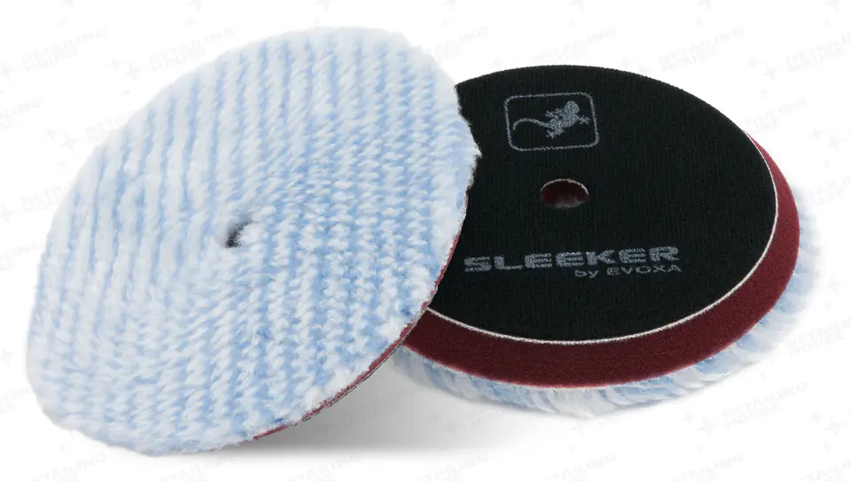 Sleeker DA Master MicroFiber to profesjonalna mikrofibra polerska, która doskonale radzi sobie z usuwaniem ciężkich i lekkich śladów hologramów, głębszych zarysowań oraz śladów utleniania z dowolnych lakierów, seria padów Sleeker stworzona została z myślą o wygodnej i efektywnej pracy z polerkami planetarnymi i mimośrodowymi (DA), pady posiadają klasyczny kształt stożkowy z otworem centralnym ale mają charakterystyczny niski profil o wysokości tylko 10mm, który zdecydowanie ułatwia prowadzenie polerki, ponadto niski profil w połączeniu z dodatkową sztywną przekładką wklejoną pomiędzy rzep a pianę powoduje że pad jest wyjątkowo stabilny i wytrzymały na działanie siły odśrodkowej i ścinającej powstającej podczas pracy na maszynach DA, biała przekładka usztywniająca pełni też funkcję izolatora termicznego od ciepła generowanego przez łożyska układu mimośrodowego, co ma bardzo duże znaczenie w przypadku niektórych polerek, pady wykonane są z mieszanki mikrofibry o długości 10mm lepiej odprowadzającej ciepło powstające w wyniku siły tarcia, co ułatwia pracę nowoczesnymi pastami polerskimi a także pomaga w usuwaniu przepracowanej pasty i urobku, wszystkie te cechy składają się na produkt który pod względem wydajności i trwałości nie ustępuje najbardziej znanym producentom, a jeżeli weźmiemy pod uwagę kryterium: cena do jakości, to zdecydowanie można zaliczyć te pady do ścisłej czołówki, do stosowania z maszynami polerskimi Evoxa i inne, dostępna także jest seria gąbek polerskich w rozmiarze 130/150mm składa się z pięciu twardości: