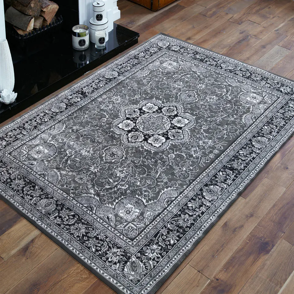 Szary dywan z kolekcji Exclusive to tradycyjny dywan z bardzo eleganckim wzorem. Delikatna kolorystyka doskonale podkreśla bogate wzornictwo. Dywany z tej serii stanowią świetna propozycję zarówno do pokoi gościnnych, jak i sypialni czy gabinetu. Do ich produkcji zostały wykorzystane materiały najwyższej jakości, dzięki czemu są one odporne na odkształcenia, odbarwienia oraz intensywne użytkowanie. Każda krawędź została wykończona ze starannością i dbałością nawet o najmniejsze szczegóły.