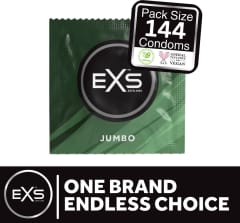 Model EXS Jumbo Mix to zestaw 144 prezerwatyw wykonanych z wysokiej jakości naturalnego lateksu. Dzięki anatomicznemu kształtowi oraz poszerzonej szerokości 69 mm i długości 221 mm, produkt został zaprojektowany z myślą o osobach potrzebujących większego rozmiaru. Każda prezerwatywa posiada prostą ściankę, zakończona jest wygodnym zbiorniczkiem oraz została pokryta warstwą silikonowego środka nawilżającego, ktory poprawia komfort użytkowania.